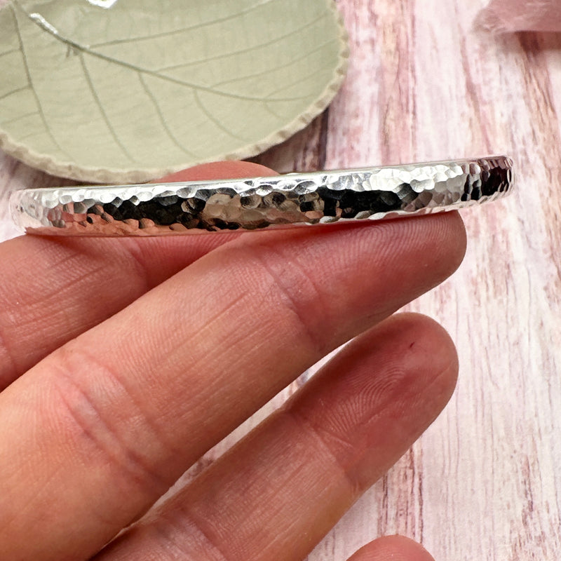 The bangle and rings are solid Sterling Silver and the bangle has been given a textured finish.